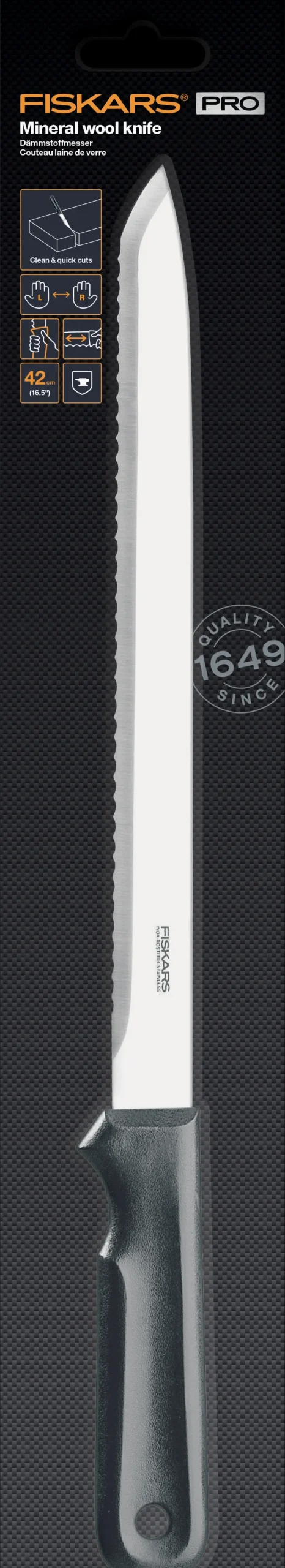 Veitsi, jossa on pitkä kapea terä. Ihanteellinen eristysmateriaalin leikkaamiseen.