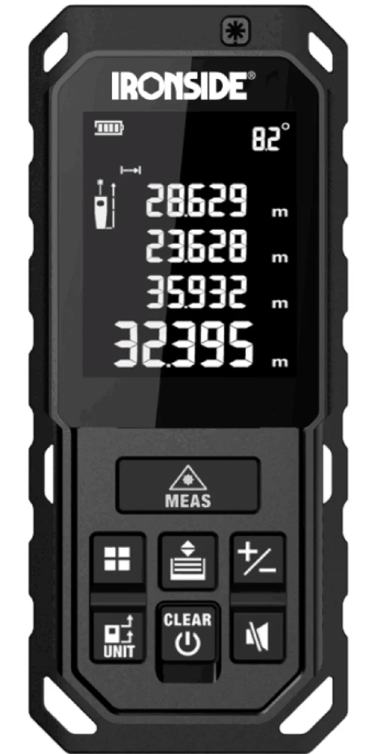 Kompakti ja vankka etäisyysmittari vihreällä lasertekniikalla, korkea laatu erittäin näkyvällä laserpisteellä. Mittaa yksinkertaisen pituuden 0,2 – 60 m, pinta-alan, tilavuuden, kulmat jne.