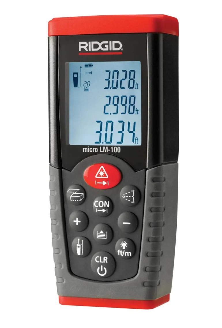 Ridgid LM-100 on etäisyysmittari, joka mahdollistaa helpon, nopean ja tarkan etäisyyden mittaamisen yhdellä painalluksella. Kytke ultraterävät luokan II laserit päälle painamalla mittauspainiketta, suuntaa laite mittauskohteeseen ja paina mittauspainiketta. Etäisyyslukema tulee näkyviin helppolukuiselle nestekidenäytölle. Tämän lujarakenteisen, kompaktin ja kannettavan mittalaitteen avulla ammattilaiset pystyvät nopeasti määrittämään putkien pituudet ja niiden ongelmakohdat sekä toteamaan nopeasti määräystenmukaiset välit.