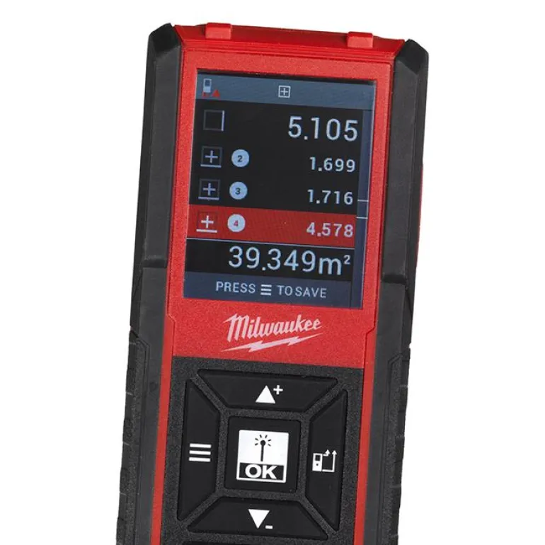 Milwaukee LDM 45 on etäisyysmittari, joka mittaa yksittäisiä ja jatkuvia mittauksia 45 metriin asti. Tarkkuus ± 1,5 mm. Varustettu isolla kolmen rivin 50 mm:n kokoisella LCD-näytöllä.