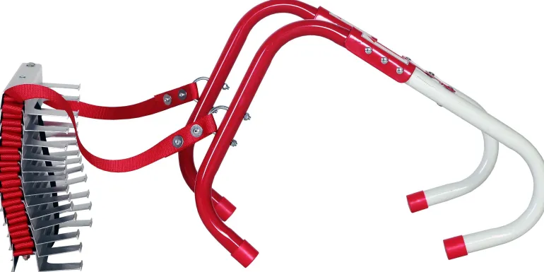 Kevyet ja joustavat tikkaat esim. Evakuointia varten. Alumiiniportaat ja kudotut palosuojatut PP-hihnat. Porras on suunniteltu siten, että se on aina 80 mm julkisivusta, askelman leveys on 305 mm. Vapautetaan helposti käsin. Voi käsitellä jopa 300 mm:n paksuja seiniä. Enimmäiskuorma 450 kg.