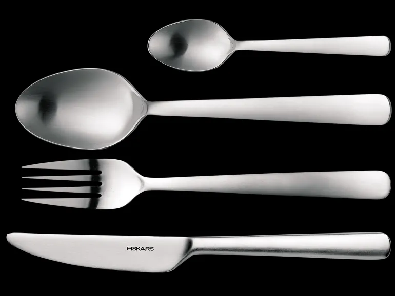 Näppärää muotoilua arjen ruoanlaittoon ja ruokailuun. Tämä 16-osainen Functional Form -aterinsetti sisältää neljä mattapintaista ruokahaarukkaa, ruokaveistä, ruokalusikkaa ja kahvilusikkaa. Aterimien muotoilu on tyylikkään moderni ja käytännöllinen. Valmistettu laadukkaasta ruostumattomasta teräksestä. Voi pestä astianpesukoneessa eikä vaadi erityistä hoitoa.