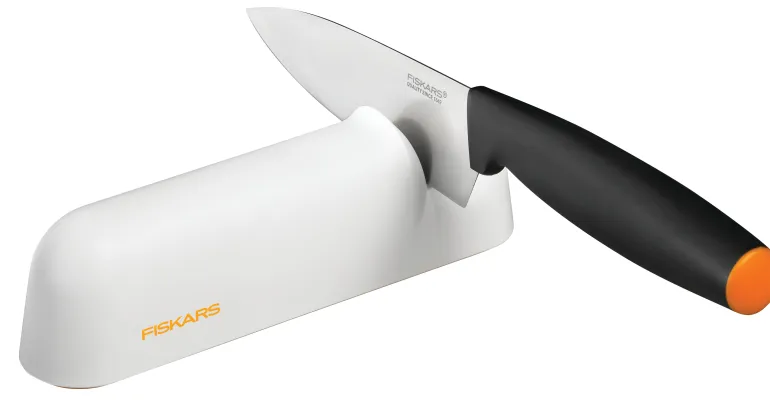 Fiskars Functional Form Roll-Sharp™ -veitsenteroitin on helppokäyttöinen työkalu kaikenlaisten keittiöveisten teroitukseen. Tarjoaa optimaalisen leikkuukulman ja suorituskyvyn. Pohjan silikonirengas pitää veitsenteroittimen paikoillaan työskentelyn aikana. Veitsenteroitin sopii sekä oikea- että vasenkätisille. Konepesun kestävä. Suunniteltu Suomessa.
