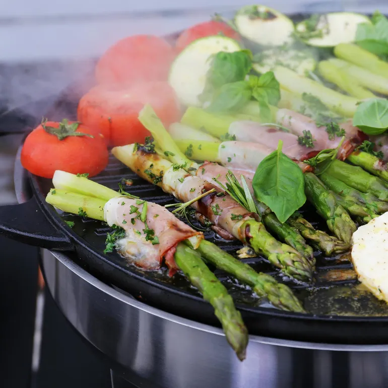 Tällä grillipannulla paistat/grillaat ruoat vähemmällä rasvalla. Voit paistaa myös pannun tasaisella, parilaraidattomalla kääntöpuolella. Sopii kaasulle, avotulelle ja sähkögrilliin.