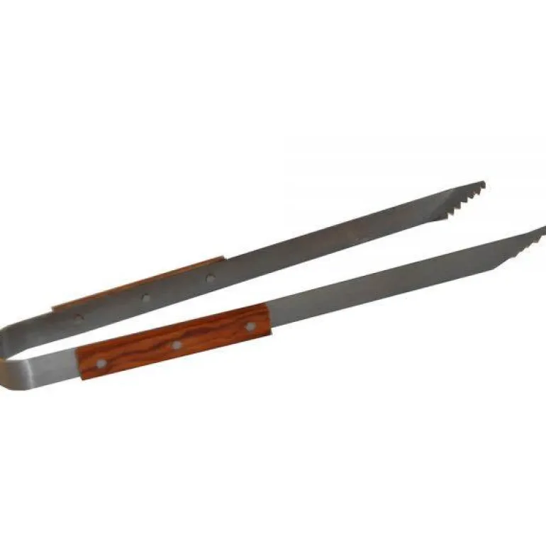 Ruostumattomasta teräksestä valmistetut grillipihdit, pituus 39 cm, puukahva. Pihdit sopivat käytettäväksi yhdessä Hällmarkin muurinpohjapannujen kanssa.