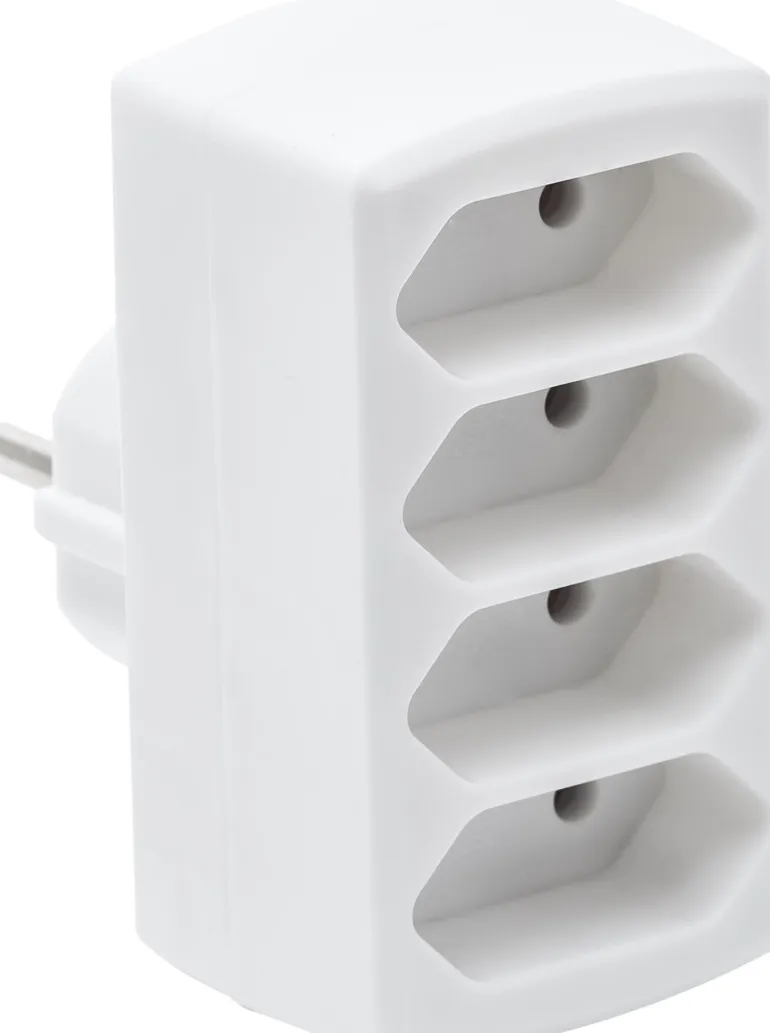 Gelia 4006230442 on 4-osainen haaroitin litteille pistokkeille/europistokkeille. Mitat 40 x 85 mm.