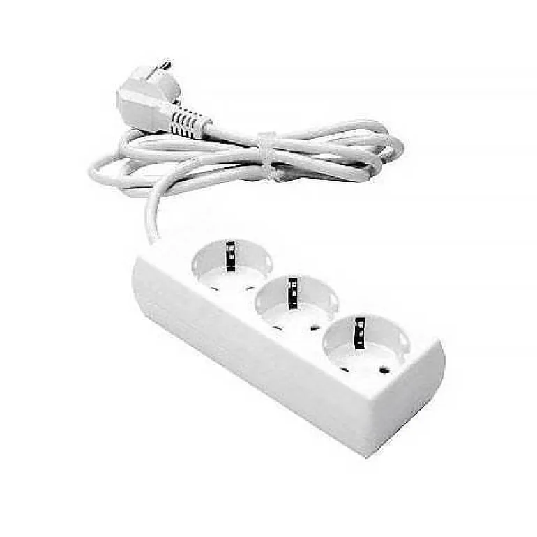 3-osainen maadoitettu haaroitusjatkojohto, jonka virtajohdon pituus on 1,5 metriä. Soveltuu sisäkäyttöön.