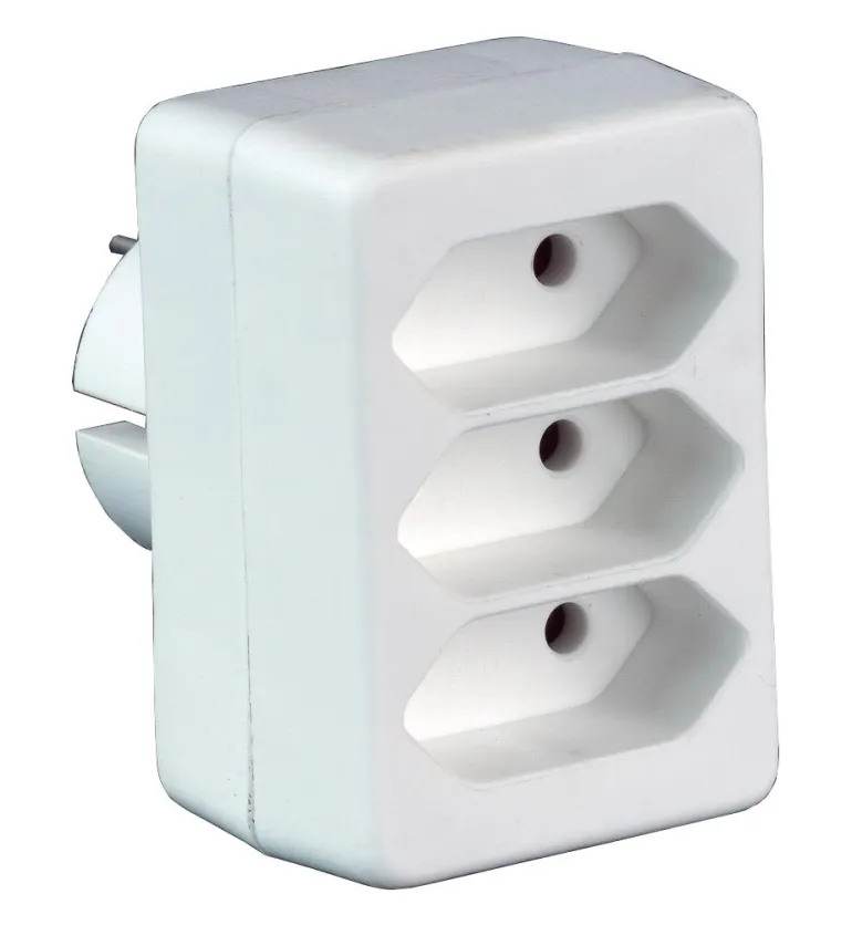 3-osainen maadoittamaton haaroituspistotulppa litteille/EU-pistokkeille.