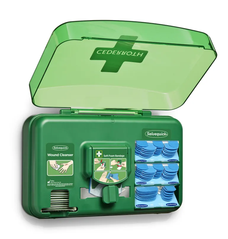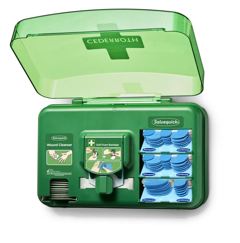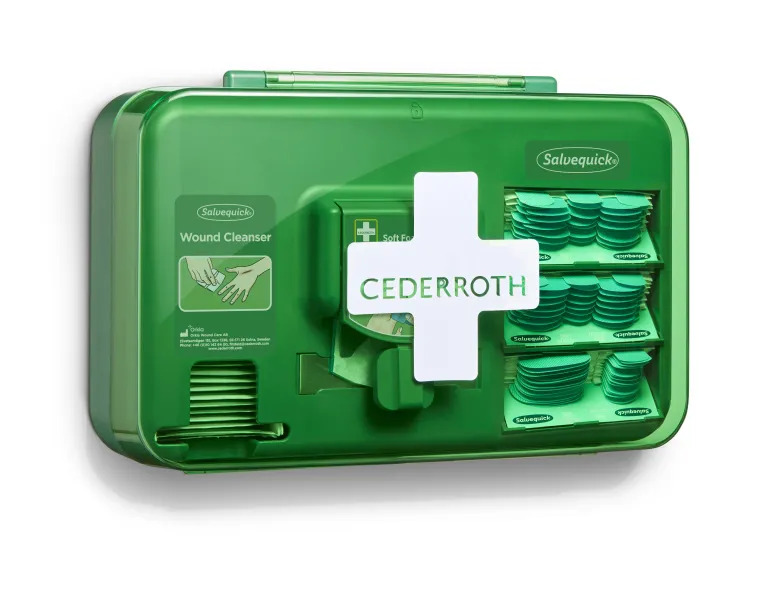 Cederroth 51011009 on haavanhoitoautomaatti, jossa on kaikki tarvittava pienten haavojen hoitoon. Kätevä ratkaisu ensiapuasemien täydentäjänä työpisteissä, joissa laastareiden tarve on ilmeinen.