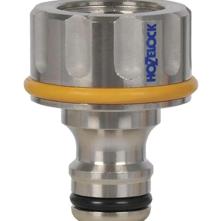 Kierteitetty hanaliitin, joka takaa turvallisen kiinnityksen 1/2″:n ulkohanoihin. Liitin on valmistettu nikkelipinnoitetusta messingistä, joten liitin on vahva, kestävä ja kestää naarmuja ja pakkasta. Liitin kiinnittyy tukevasti ulkohanaan ja muuntaa sen Hozelockin pikakytkentäjärjestelmäksi.