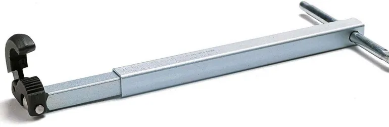Teleskooppinen hanamutteriavain putkikapasiteetilla 1 1/4– 2 1/2″. Ihanteellinen ahtaissa tiloissa työskentelyyn.