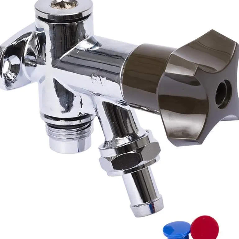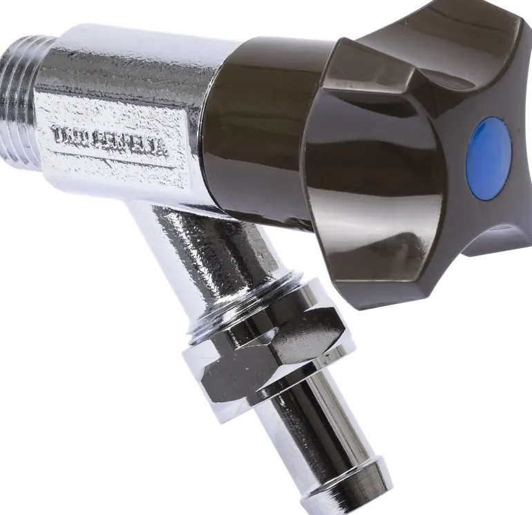 G15 (½”) kromattu hanaventtiili letkuliittimellä, lyhyt rakenne, seinäasennus. Hanaventtiilissä on takaiskuventtiili, joten soveltuu kunnalliseen vesijohtoon.
