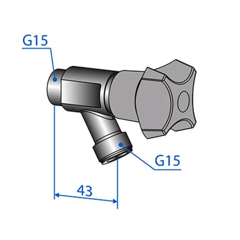 Trio Perfekta 975400 on kromattu hanaventtiili seinään, lyhyt malli. Letkuliitännällä. Hanaventtiilissä on G15-ulkokierre liitäntään ja kylmän veden merkintä.