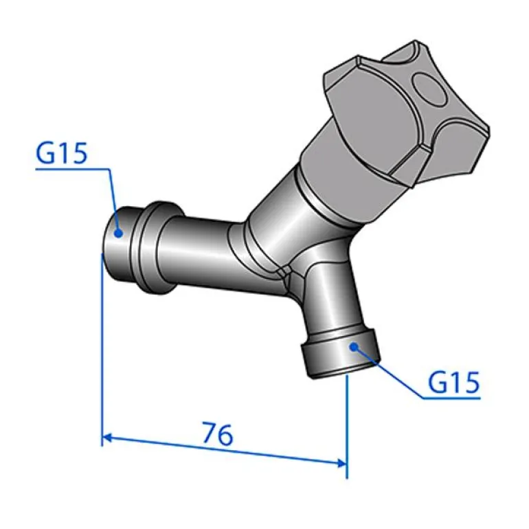 Mattakromattu hanaventtiili, vakiomalli, tyyppihyväksytty takaiskuventtiili ja letkuliitin. G15-ulkokierre ja nupissa kylmän veden merkintä. Letkuliitäntä 15.