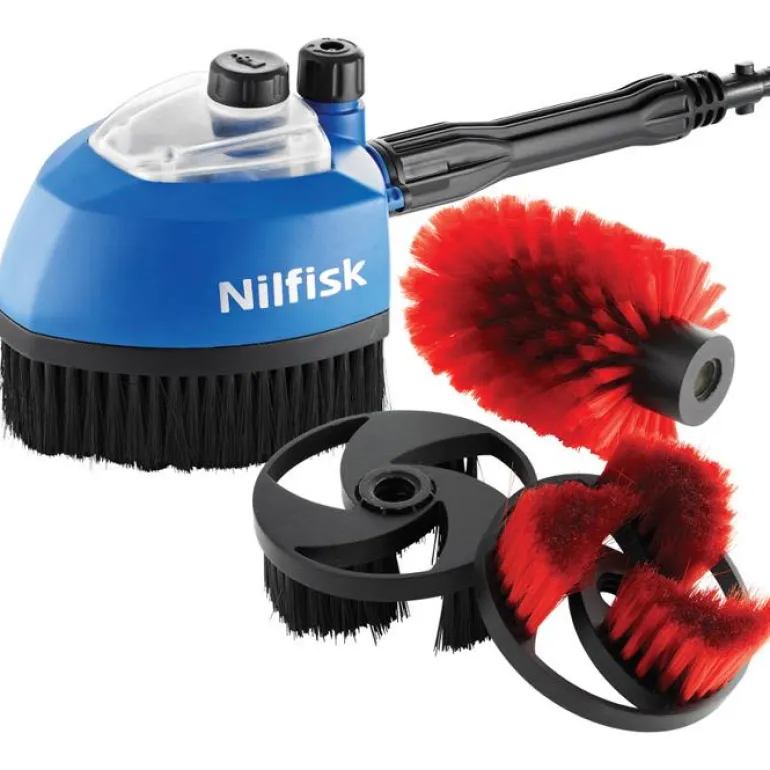 Monitoiminen harja kemiallisella annostuksella ajoneuvosi puhdistukseen. Mukana kolme vaihdettavaa harjapäätä. Sopii Nilfisk -painepesureille.