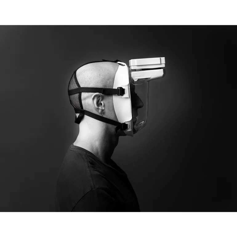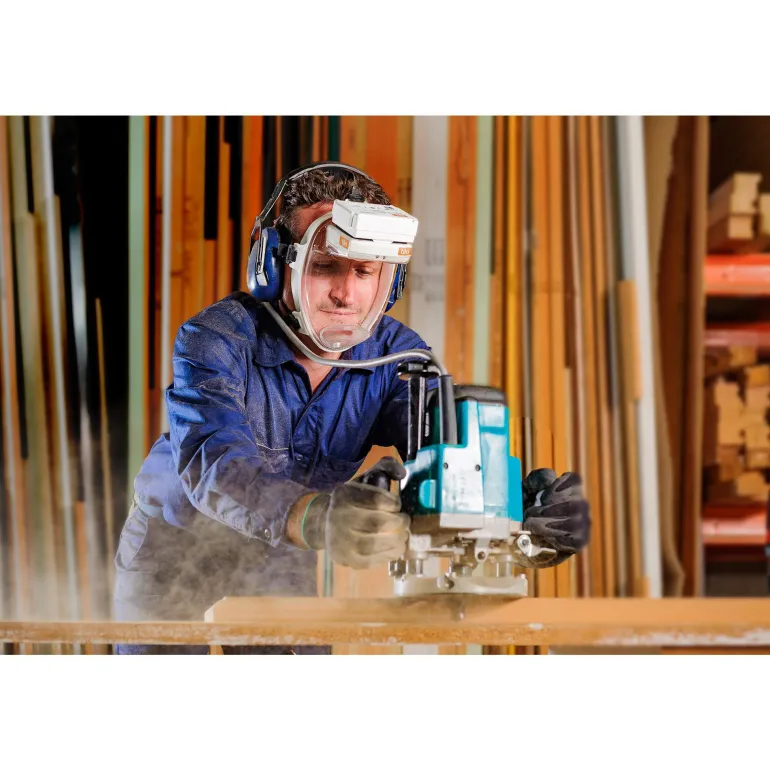 Hengityssuojain säätää itse puhaltimen nopeutta, ja sitä on miellyttävä käyttää. Kaksi sisäänrakennettua voimakasta ja energiatehokasta LED-valaisinta. Valaisimet on sijoitettu silmien korkeuden yläpuolelle, ja ne antavat valoa ahtaissa tiloissa niin, että voit pitää molemmat kädet vapaina. LED-valaisimet vaikuttavat akun käyttöaikaan minimaalisesti. Valo sytytetään painikkeella.