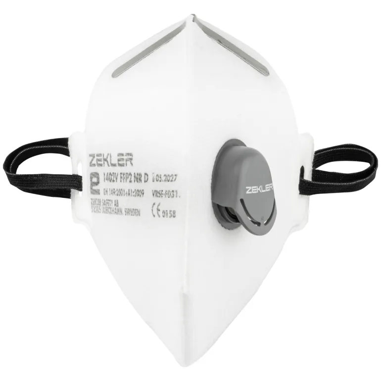Zekler 1402V on mukava, suodattava hengityssuojain taitettavalla muotoilulla. Suodatinmateriaali tarjoaa erittäin korkean suodatustehokkuuden ja samalla poikkeuksellisen alhaisen hengitysvastuksen. Joustava ja elastinen nauha antaa hyvän istuvuuden. Pehmeä, taipuisa leukaosa. Uloshengitysventtiili (1402V) poistaa tehokkaasti kosteutta, kuumuutta ja hiilidioksidia sekä tarjoaa mukavan tunteen koko työvuoron ajan. EN 149:2001+A1:2009.
