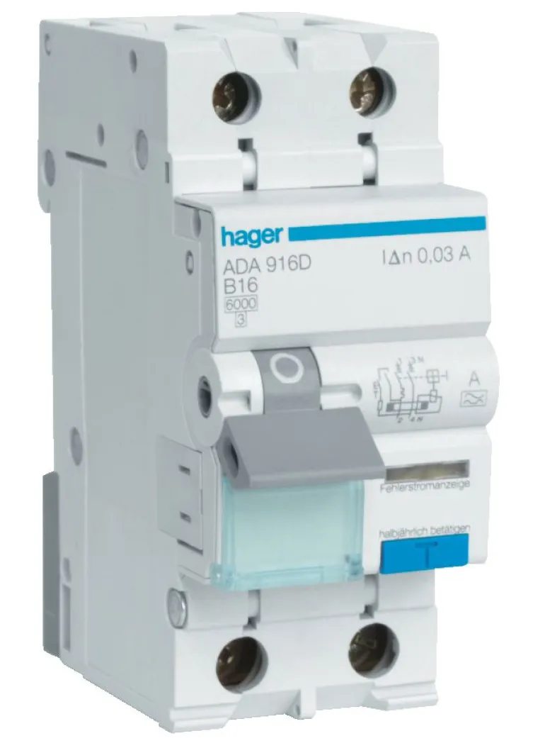 Henkilönsuojain, tyyppi A, ominaisuus B, ruuviliitäntä Henkilönsuojain on maadoitusvikasuoja, jossa on sisäänrakennettu ylivirtasuoja miniatyyrikatkaisimessa, mikä säästää tilaa ja antaa käyttäjälle selkeämmän näkymän. Henkilönsuojain on standardin EN 61009-1 mukainen.
