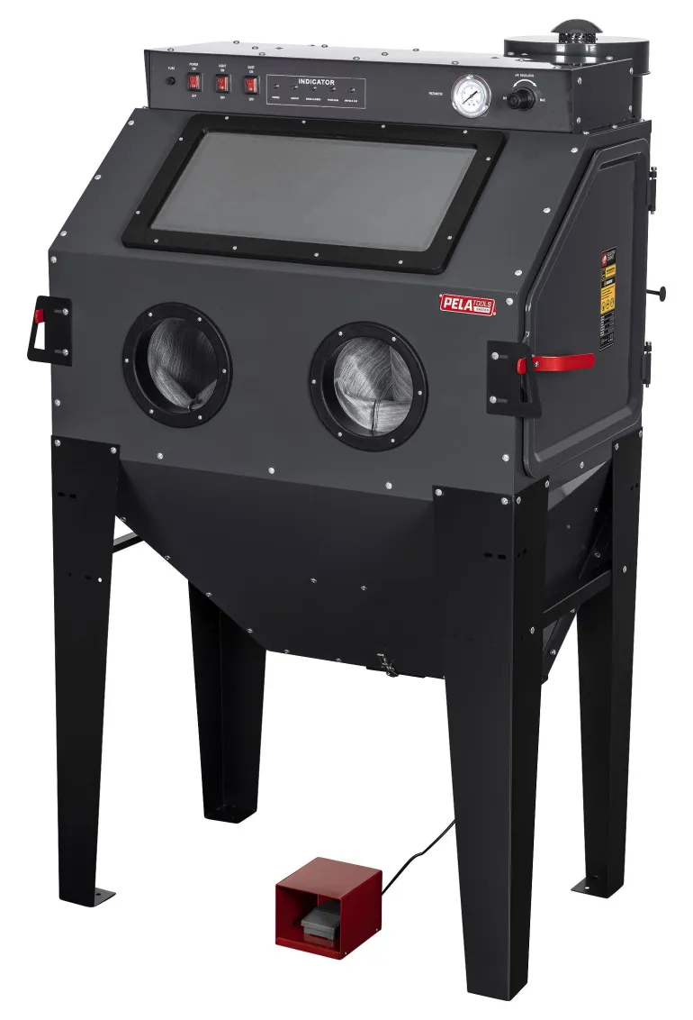 Pela 75506 on hiekkapuhalluskaappi kahdella hiekkapuhalluspistoolilla (yksi jalkapoljinohjausta varten, toinen käsin hallittava). Puhallustilassa kaksi sivuovea, valaistus, hiekkapuhalluskäsineet sekä syklonipölynimuri. Erinomainen hiekkapuhalluskaappi verstaaseen tai teollisuuskäyttöön.