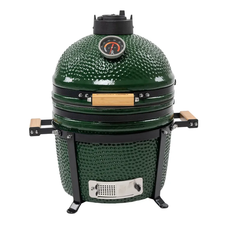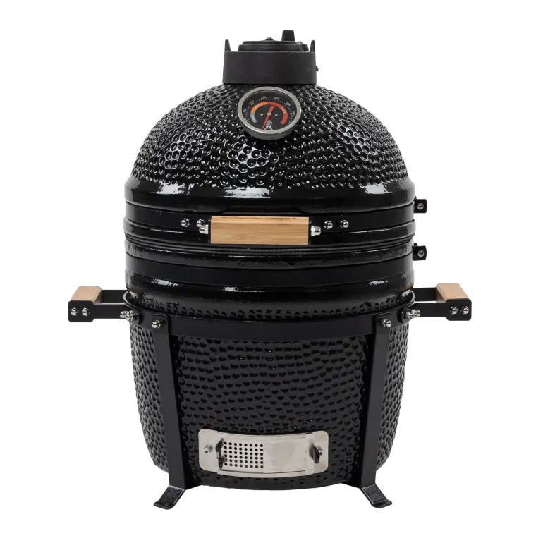 Tämä kompakti keraminen grilli on helppo ottaa mukaan vaikka kesämökille tai muuhun ulkoruoanlaittoon. Nosta kätevästi grillauskokemuksesi uudelle tasolle, kun valmistat ruokaa pienemmälle seurueelle – missä tahansa oletkin. 34 cm grillauspinta riittää muutamalle hampurilaiselle tai pihville kerrallaan. Kätevä esim. rajoitettuumpaan tilaan tai käyttöön, jossa normaalikokoinen grilli puuttuu. Vankkarakenteinen ja korkealaatuisilla materiaaleilla Kamado Sumo Junior tarjoaa kaikki samat ominaisuudet kuin suuremmat mallit – mutta kompaktimmassa koossa.