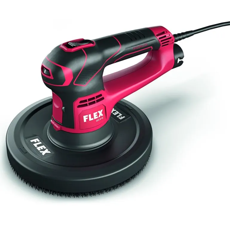 Tehokas pölynimu harjareunan ja hiomalautasen välistä estää hiomatarviketta tukkeutumasta ja työskentely sujuu pölyttömästi. Tehokas poisto on mahdollista suuren letkun poikkileikkauksen ansiosta. Imuletku liitetään suoraan työkaluun FLEX-kiinnitysjärjestelmän kautta. Hiomakone sopii erinomaisesti käytettäväksi pienillä pinnoilla sekä ahtaissa tiloissa ja on myös sopiva valinta esimerkiksi kipsilevyn hiontaan ennen kiinteää EPS-eristystä ennen maalaustyötä. Kone on täysin yhteensopiva Kirahvien GE 7:n kanssa.