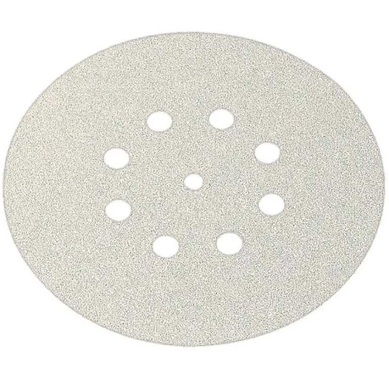 Rei’itetty hiomapaperi, Ø 150 mm, tarrakiinnitys. Käytetään puulle, maalille, autolakoille, tasoitteelle, lasikuituvahvisteiselle muoville ja muoveille.