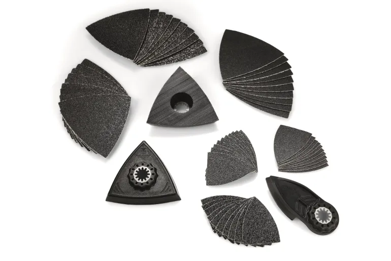63-osainen lisävarustesarja kulmien ja reunojen hiomiseen. Sopii kaikkiin FEIN MultiTools -työkaluihin sekä kaikkiin muihin yleisiin Starlock -kiinnityksellä varustettuihin MultiTools-työkaluihin.