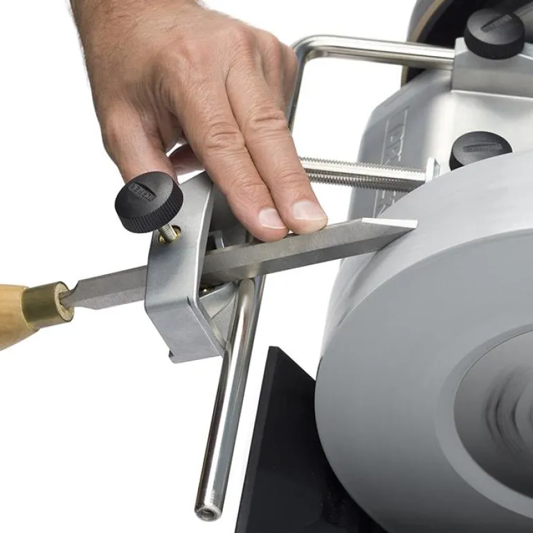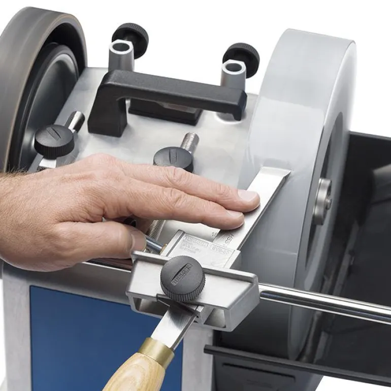 Ainutlaatuinen patentoitu malli sallii myös ovaalinmallisten talttojen hionnan. Ohjain kääntää taltan niin, että se on linjassa yleistuen kanssa, joten voit hioa sekä suoria että kuperia teriä. Sorvaustaltan suurin leveys 32 mm.