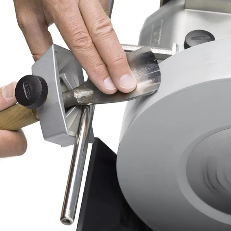 Onko sinulla uusi sorvaustyökalu, jonka terästä tarvitsee poistaa paljon materiaalia profiilin muokkaamiseksi? Asennussarjan BGM-100 avulla voit käyttää SVS-50:tä myös penkkihiomakoneessa. Ole kuitenkin varovainen, ettet polta terää. Kun olet hionut karkeasti terän penkkihiomakoneessa, siirry Tormek-laitteeseen ja viimeistele terän teroitus.