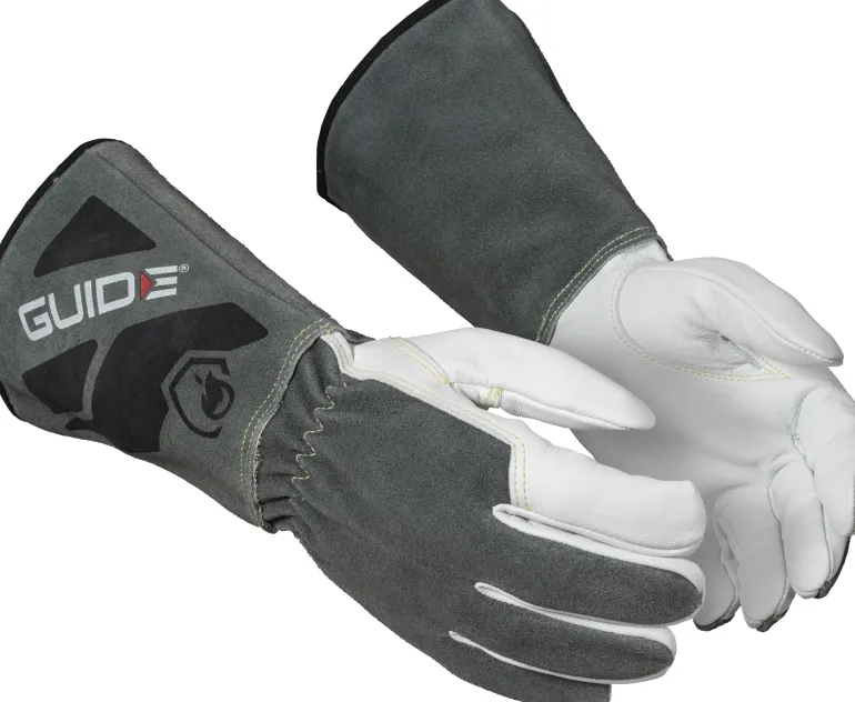 Guide Gloves 1275 on hitsauskäsine, jossa kämmenessä ja kämmenselän puolella kestävää ja pehmeää lehmän haljasnahkaa. Sopii TIG-hitsaukseen. Ranneke on valmistettu lehmän haljasnahasta. Sen sisäosassa on ohutta puuvillakangasta ja kaikki saumat on valmistettu lämmönkestävästä kevlarista. Käsineessä on sormissa sivupinnat, jotka antavat parasta mahdollista sorminäppäryyttä ja käyttömukavuutta. Täyttää standardin EN12477 tyyppi B vaatimukset.