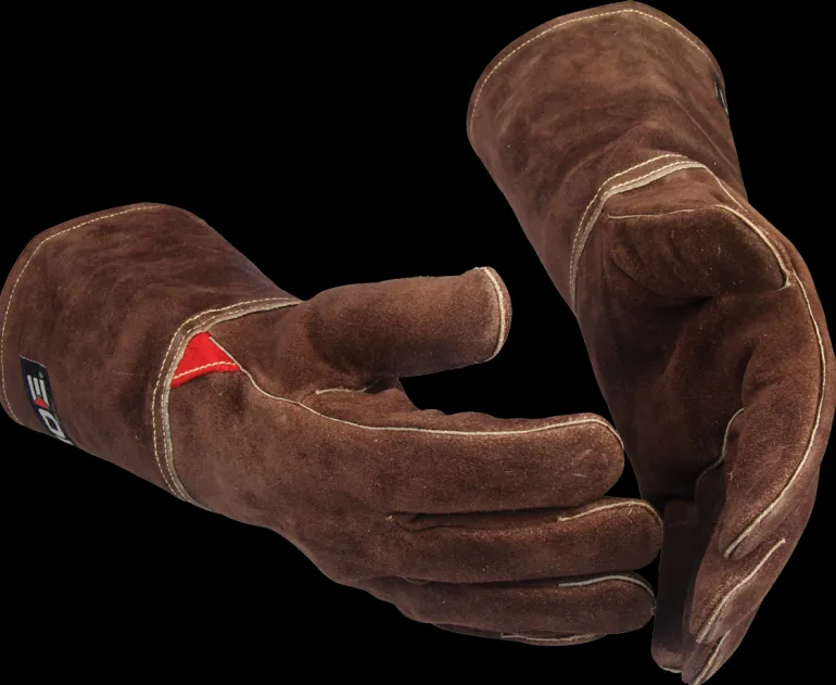 Guide Gloves 1201 on korkealaatuinen pitkän mallin hitsauskäsine, valmistettu naudannahasta, jossa vettä ja öljyä hylkivä pintakäsittely. Käsineessä on puuvillainen kokovuori ja kaikki ompeleet ovat lämmönkestävää Kevlar-lankaa. Pituus 32 cm. Hyväksytty standardin EN 12477 tyypin A mukaisesti.