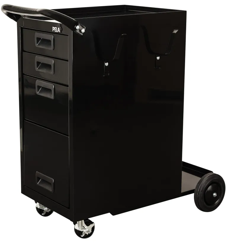 PELA 496551 on hitsausvaunu, jossa on 3 erikokoista laatikkoa ja kaappialaosassa työkalujen säilytystä varten. Vaunun sivussa on koukku, joka on erityisesti suunniteltu hitsausletkujen ja vastaavien ripustamiseen. Taso takaosassa kaasupullolle.