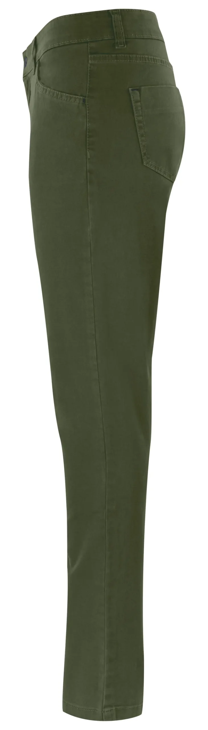James Harvest Officer Woman ovat mukavat ja joustavat chinot pehmeästä puuvillasta. Sekoitus puuvillaa ja pieni määrä elastaania tekevät housuista alkuperäiseen muotoonsa palautuvat pesun jälkeen. Entsyymikäsitelty ja esikutistettu kangas, jossa on pölyä hylkivä ominaisuus. YKK-vetoketjulla.