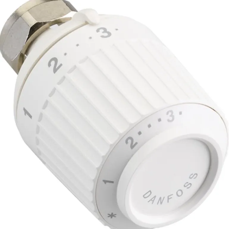 Danfoss RA 2770 T on valkoinen huoltotermostaatti, jossa on sisäänrakennettu anturi, asennettavaksi TA-patteriventtiileihin. Säätöalue 8-21 °C.