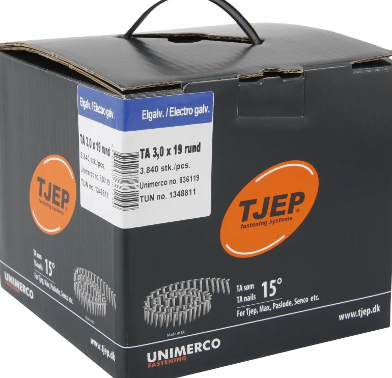 Huopanaula 15-asteisella rullalla, kattopahvin, tuuliesteen, ohuiden metallilevyjen, kehysten jne. naulaamiseen. Sopii Tjep TA 45 -huopakattonaulaimeen.