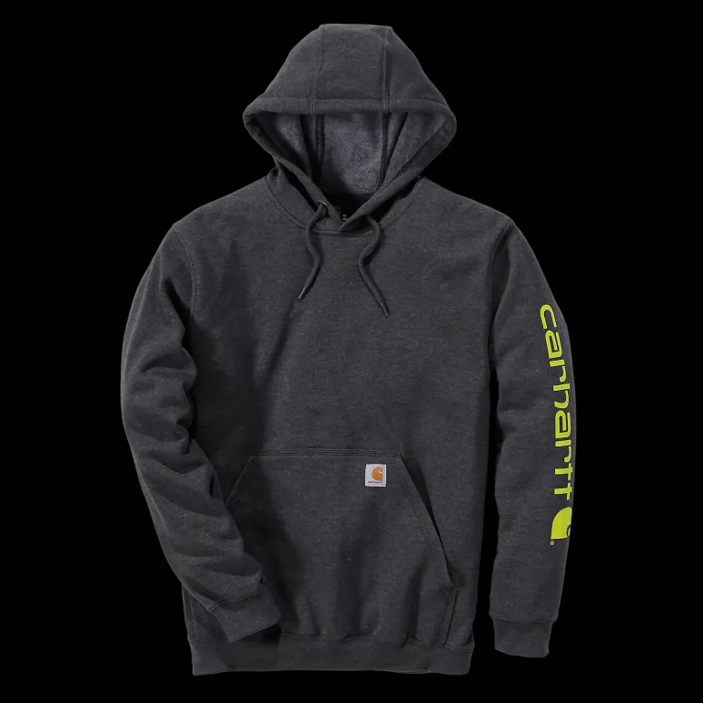 Mukava ja kestävä huppari Carharttin keskipaksusta puuvillasekoitteesta (midweight cotton blend). Loose Fit -istuvuudella (Long Sleeve). Reilun kokoinen etutasku käsien lämmittämiseen, joustavat, elastaanilla vahvistetut resorit hihansuissa ja helmassa sekä Carhartt-painatus vasemmassa hihassa. Carhartt-logomerkki ommeltuna taskun yläreunaan.