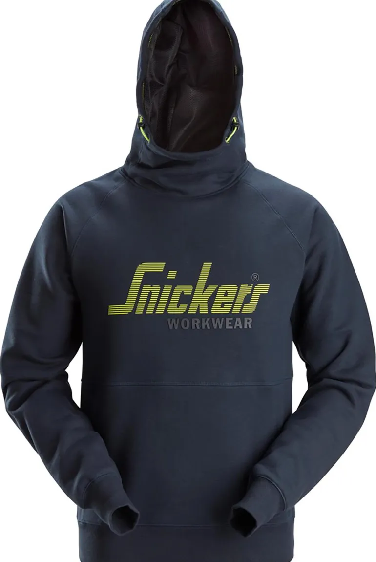 Snickers 2845 on huppari Snickers Workwear-logopainatuksella, korkealla kauluksella ja harjatulla sisäpuolella. Tilava etutasku verkkovuorella.