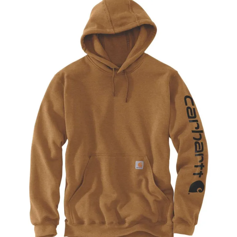 Carharttin ruskea huppari keskipaksusta puuvillan ja polyesterin sekoituksesta (Mid Weight Fleece, 59% puuvilla/41% polyesteri, 10.5 oz/yd²- 356 gsm) Loose Fit -istuvuudella. Puuvillasekoite on pehmeää ja kestävää, ja tarjoaa hyvän käyttömukavuuden. Sopii hyvin kerrospukeutumiseen. Hupparissa on tilava etutasku käsien lämmittämiseen ja elastaanilla vahvistetut ribbineulotut resorit hihansuissa ja helmassa.