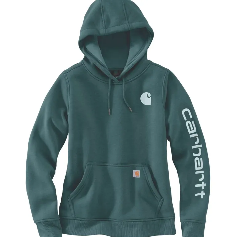 Carharttin lämmittävä naisten huppari paksummasta puuvillasekoitteesta (heavyweight fleece, 55 % puuvilla, 45 % polyesteri, 10,5 oz/yd² – 356 g/m²). Harjattu sisäpinta pehmeyttä varten. Relaxed Fit-istuvuus, joka helpottaa kerrosten lisäämistä. Long Sleeve -malli. Jersey-vuorattu kolmiosainen huppu kiristysnauhalla. Etutasku käsien lämmittämiseen (taskussa piilotasku medialaitteelle). Joustavat, elastaanivahvistetut resorit hihansuissa ja helmassa. Carhartt -logo- ja tekstipainatukset edessä ja vasemmassa hihassa.