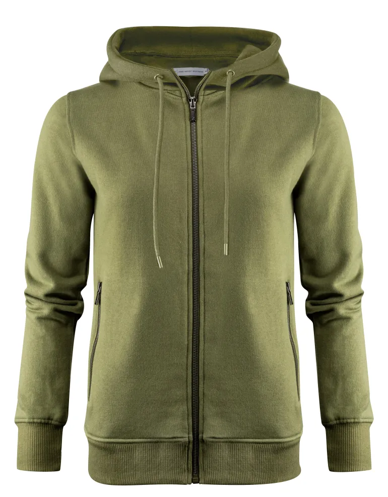 James Harvest Westwood on naisten vetoketjullinen huppari luomupuuvillaa harjatulla sisäpuolella. Resorit hihansuissa.