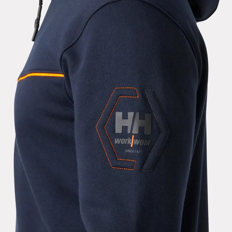 Trendikäs ja mukava H/H Workwear Chelsea Evo -huppari modernilla leikkauksella, kestävillä YKK-vetoketjuilla ja värikkäällä verkkovuoratulla hupulla. Yhteensopiva Chelsea Evo -housujen kanssa.