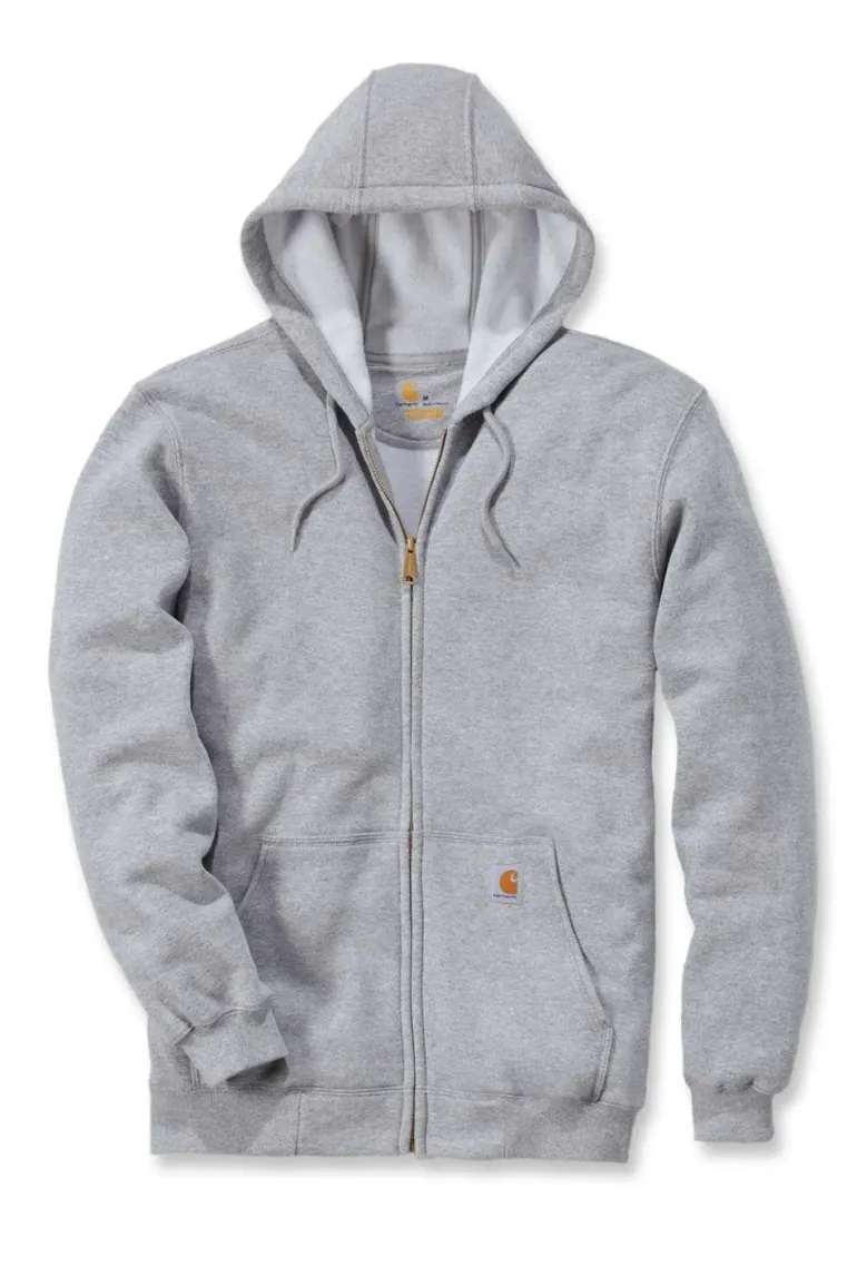 Carharttin mukava ja kestävä huppari keskipaksua puuvillasekoitetta (midweight cotton blend). Istuvuus Loose Fit (Long Sleeve). Hupparissa täyspitkä vetoketju edessä, kaksi etutaskua ja nyörillinen kolmiosainen huppu. Joustavat, elastaanilla vahvistetut ribbineulotut hihansuut ja helma sekä Carhartt-logomerkki ommeltuna etutaskuun.