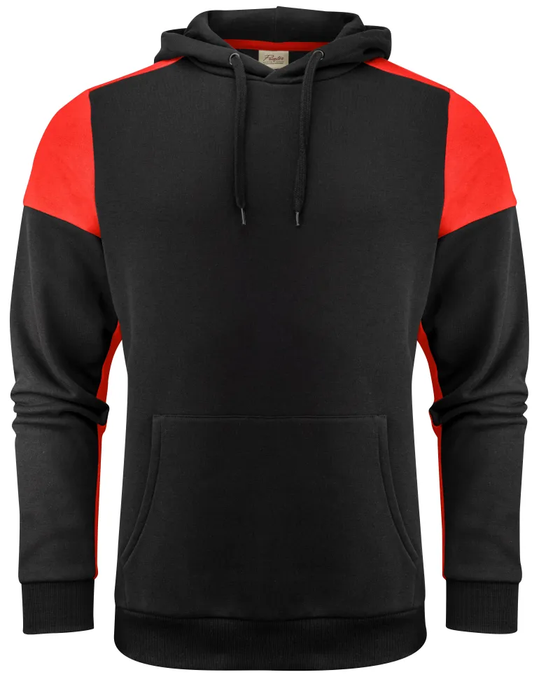 Printer Hoodie on kaksivärinen huppari, jossa kontrastiväriset alueet olkapäissä ja hihoissa. Hihansuissa ja helmassa 2×2 ribbineulos, joka auttaa säilyttämään lämpöä.