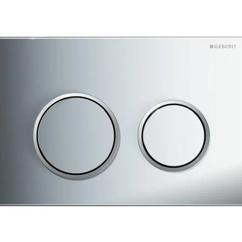 Huuhtelulevy, pieni malli, kaksitoimisella huuhtelulla. Valkoinen, kiiltävät kromikoristeet. Uppoasennettavien Geberit Omega -säiliöiden huuhteluun. Käyttö ylhäältä/edestä.