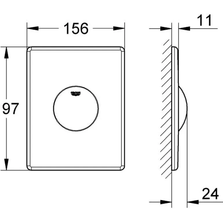 Skate-huuhtelulevy 156 × 197 mm yksöishuuhteluun, pneumaattiselle purkausventtiilille. Pysty- ja vaakasuora asennus. ABS-muovia, GROHE StarLight -kromipinta ja vettä säästävä GROHE EcoJoy -teknologia.