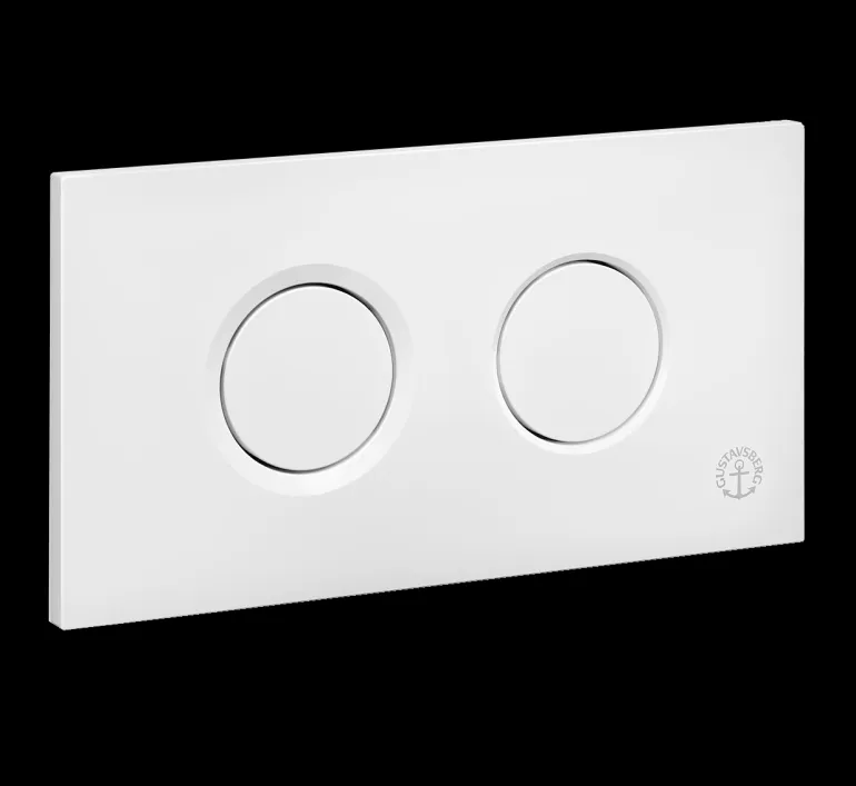 Gustavsberg Triomont XT on pneumaattinen huuhtelupainike kaksitoimiseen huuhteluun. Valkoista muovia.
