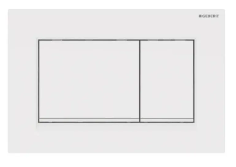 Geberit Sigma30 -huuhtelupainike huuhtelun käynnistykseen Sigma-piilohuuhtelusäiliöille (kaksoishuuhteluun). Värinä mattalakattu valkoinen helppohoitoisella pinnoitteella (valkoiset design-listat). Materiaalina muovi.