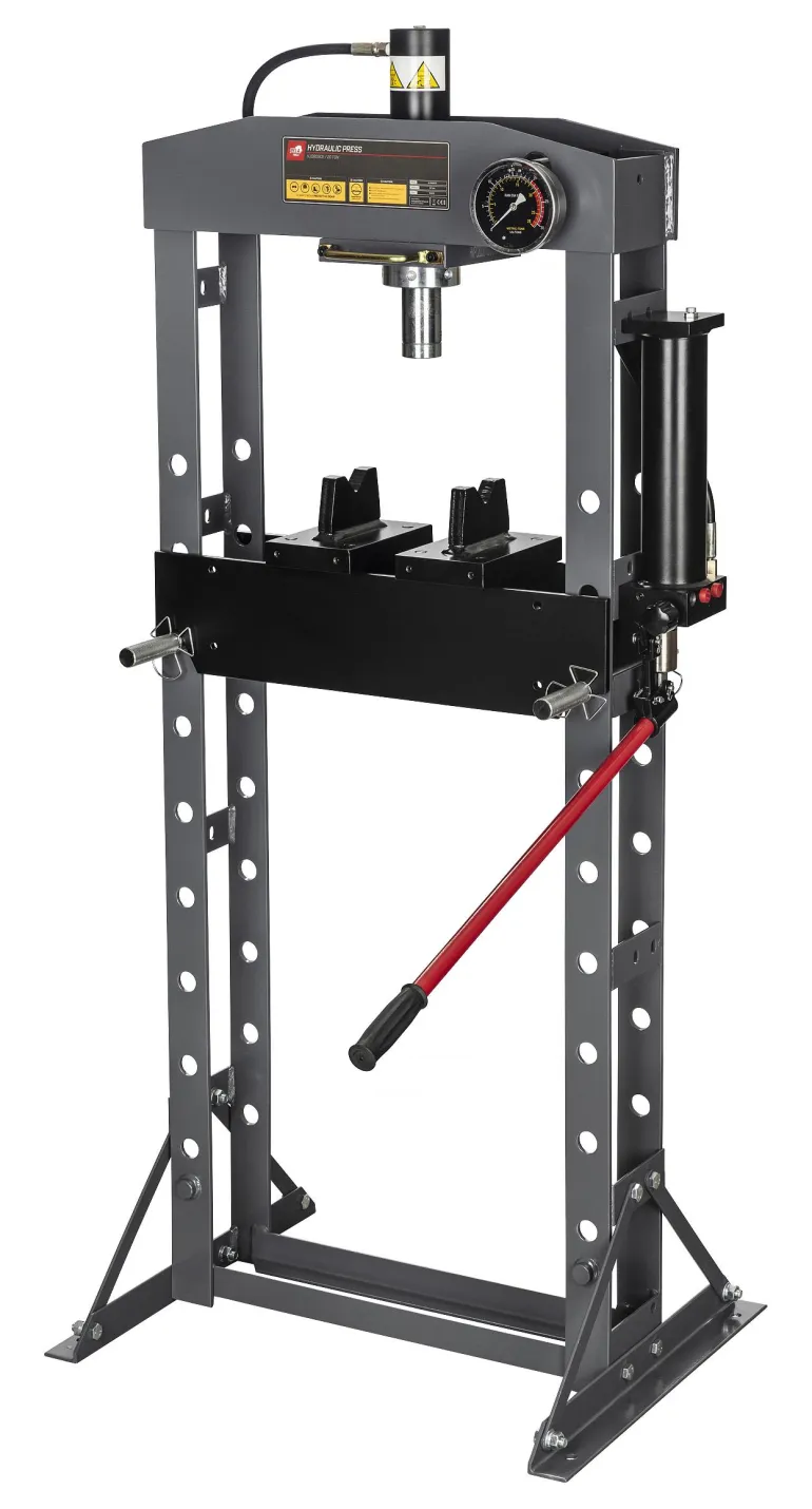 Voimakas teollisuusmallinen hydraulipuristin (hydrauliprässi). Mukana 2 vahvaa puristuslevyä.