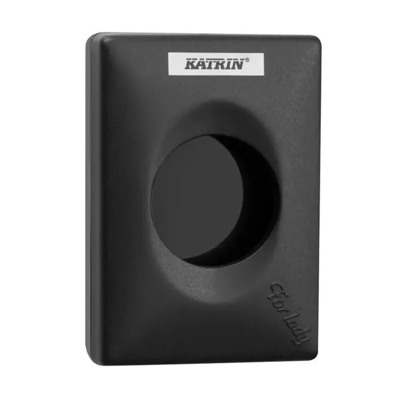 Seinään kiinnitettävä annostelija Katrin-hygieniapusseille. Helppo täyttää sekä mahdollistaa hygieniapussien helpon saatavuuden.