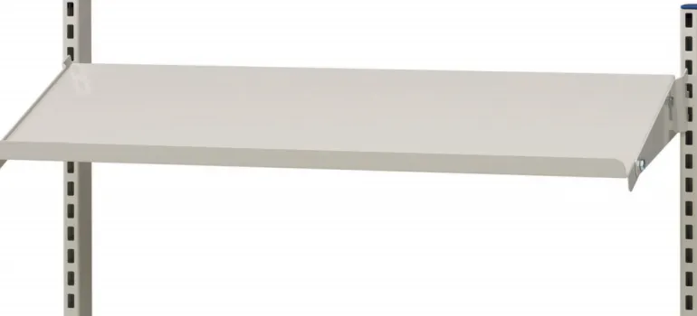Kulmahylly 875×300 mm GBP-työpöydälle. Suora reuna, voidaan asentaa sekä ylös- että alaspäin. Sisältää pidikkeet. Suurin jaettu kuorma: 50kg